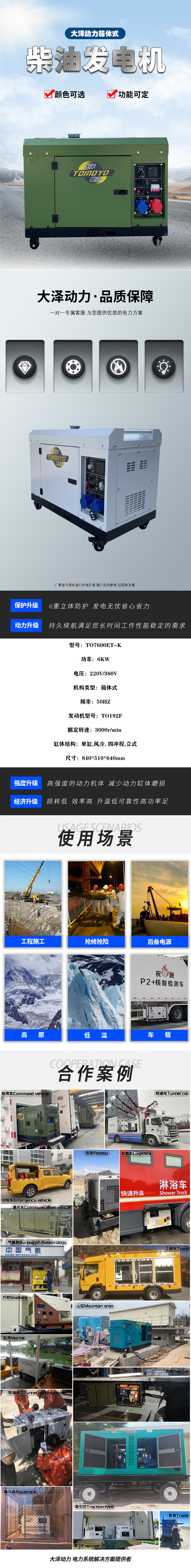 大澤動力6KW靜音柴油發(fā)電機TO7600ET-K
